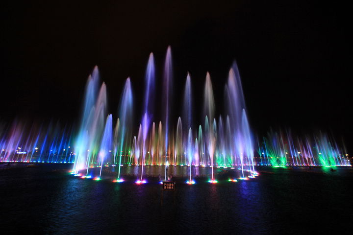 西湖音樂噴泉長約126米,弧形部分寬約2米,整個音樂噴泉主要有七···